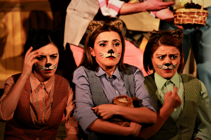 …Բեմում թումանյանական կերպարներն են, «Շունն ու կատուն» խառնվել է «Մի կաթիլ մեղրին»՝ դառնալով «Մի կաթիլ հեքիաթ»: Ներկայացումն սկսվում է աշխույժ ռիթմ ու տեմպով, գրավիչ երաժշտությամբ, չարաճճի փիսիկները դահլիճ են փոխանցում արկածների սպասելիք, բեմը կենդանանում է՝ վայրկյանների ընթացքում վերածվելով շուկայի, բազմերանգ պերոսնաժներ՝ աչք ուրախացնող գունագեղ կոստյումներով…